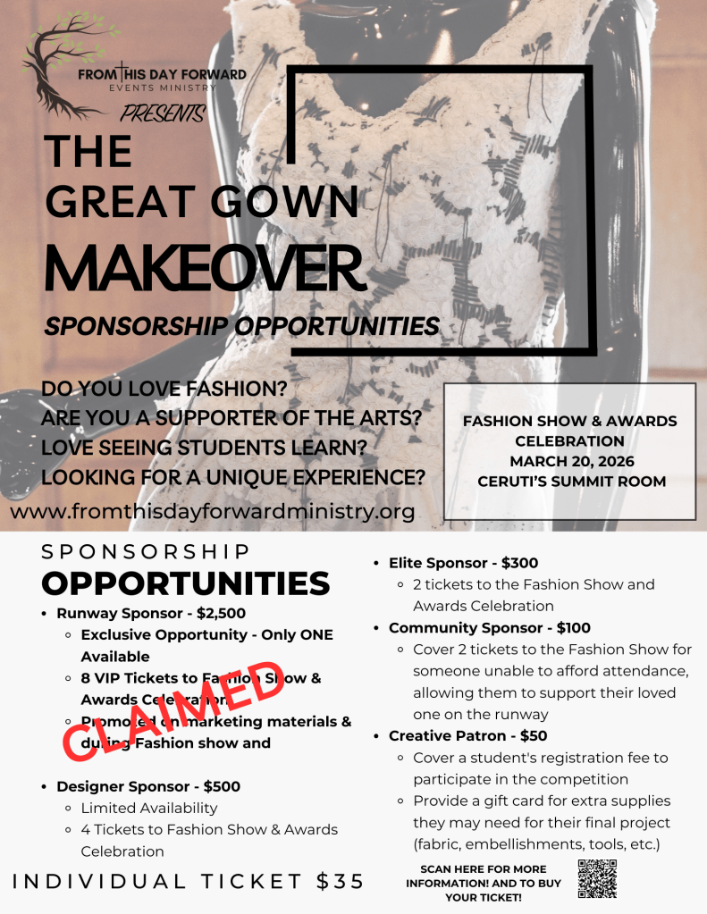 Click HERE to learn more about becoming a sponsor for the Great Gown Makeover 2026! And to buy YOUR ticket to attend!!